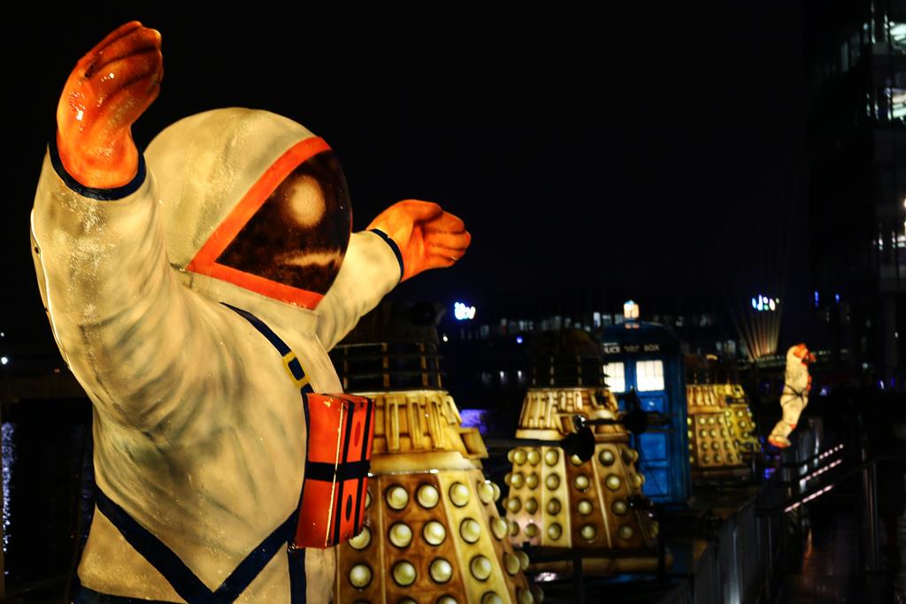 Alongside donations from the Blackpool illuminations – I didn’t expect the Dalek’s head to swivel and it cry out “Exterminate” – there was Voyage by Aether & Hemera, featuring 198 origami boats floating in Dock 9. I didn’t have time to play with the website to create my own patterns, but the designs being created by other visitors were certainly pleasing.